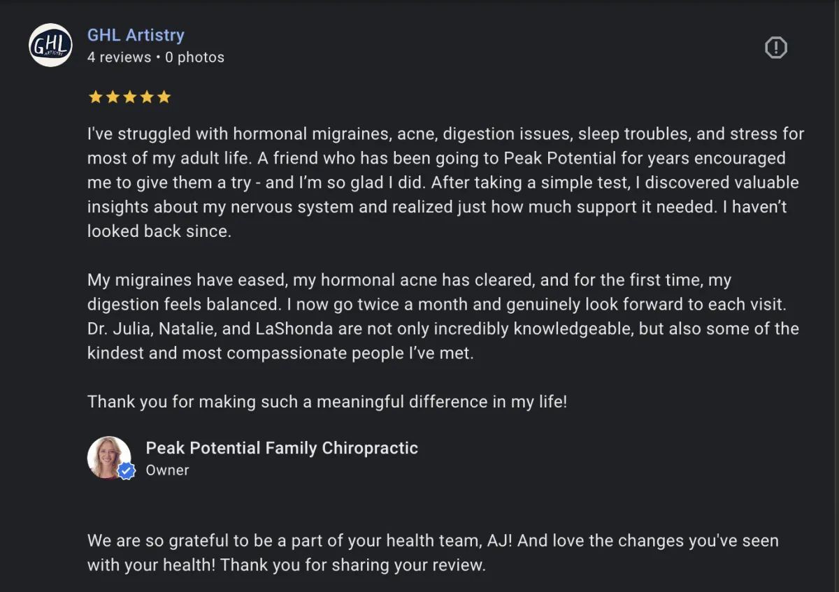 **You leave knowing what’s going on in your nervous system, what could be driving your symptoms and what needs to change, or your money back!