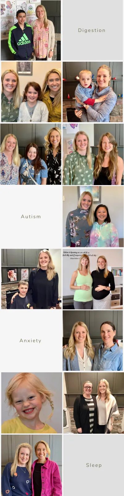 We specialize in helping chronic health conditions, like Anxiety, Digestion, Sleep/Fatigue, Behavioral Outbursts, Fibromyalgia, Autism, and Autoimmune Conditions